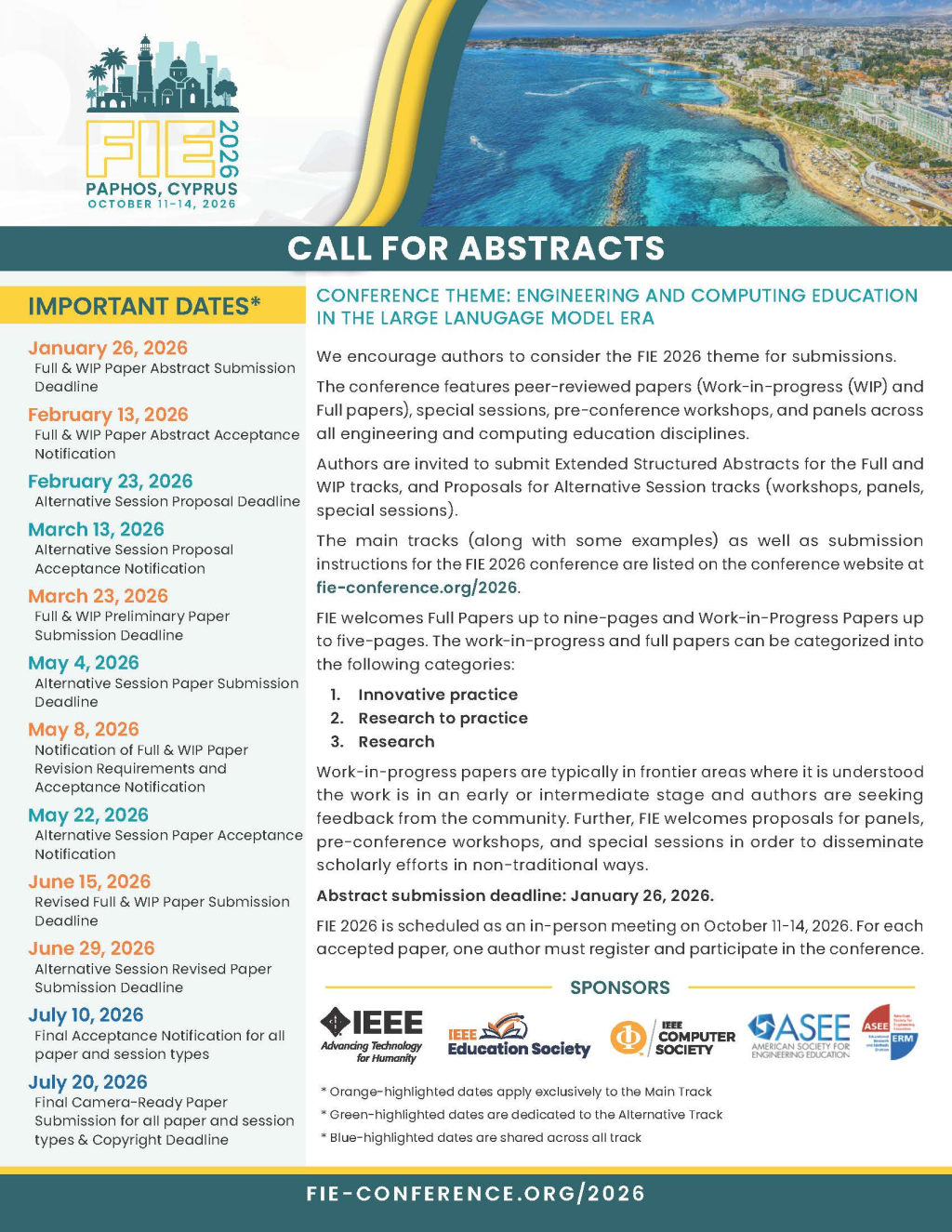 We encourage authors to consider the FIE 2026 theme for submissions.
